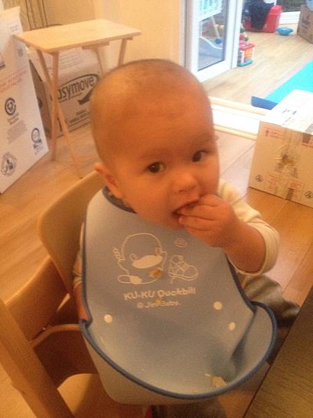 午睡後會給他點心以示鼓勵有好好睡覺,喜歡自己拿著餅乾吃。