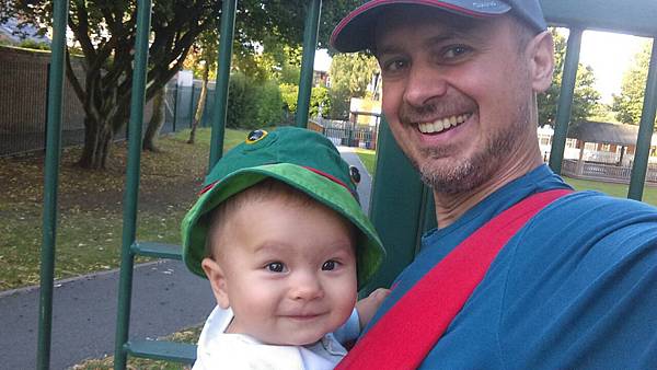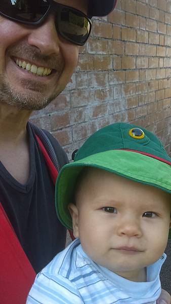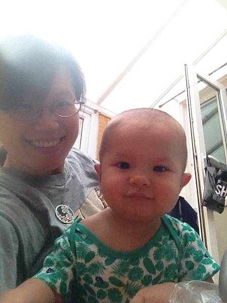 最後獻上兩張對照組:上圖為剪髮前跟爸爸出去散步; 下圖則是剪完光頭後無奈的模樣...