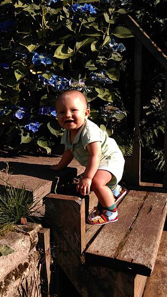 很喜歡四肢並用爬樓梯,這是到我們花園的木梯。